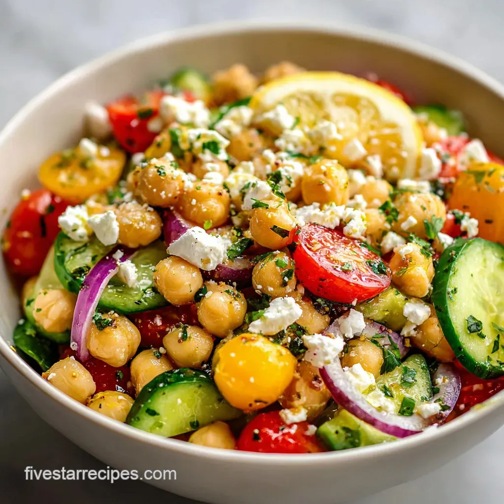 Healthy Mediterranean Chickpea Salad with Lemon Dressing and Feta Cheese